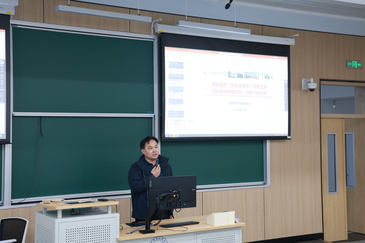 党政办主任陈砾宣贯了学院年度考核方案,明确了年度考核标准,对年度考核和聘期考核的部分问题进行了说明,同时,对学校博士后资助计划申报和资助政策进行了介绍。
