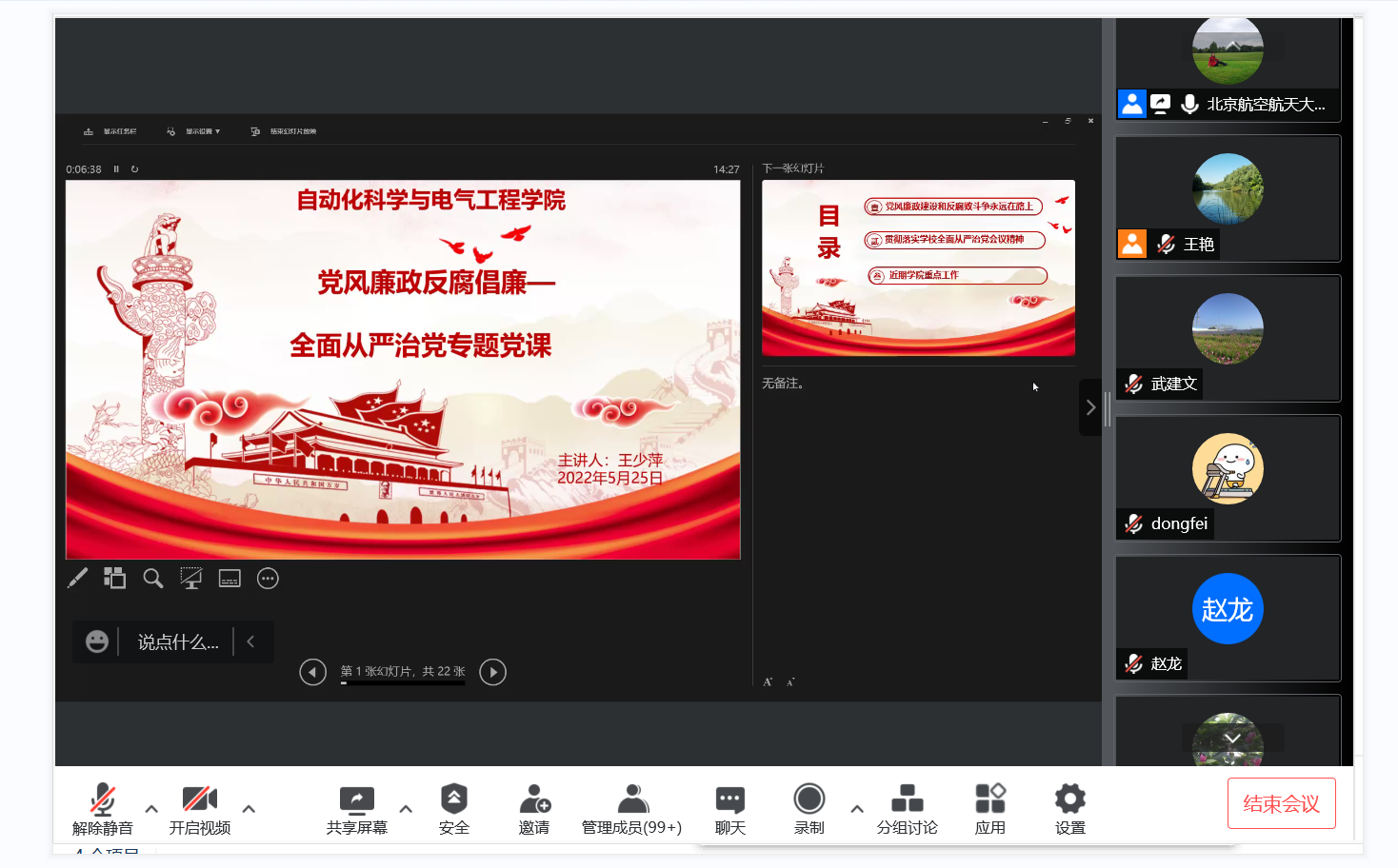2022年5月25日英国上市公司365党委书记王少萍做了“从严治党暨党风廉政建设”专题党课。会议以线上腾讯视频会议方式进行,学院全体教职工参加了本次集体学习活动。