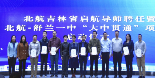 仪式上,我校领导为启航导师代表颁发聘书,双方领导共同推动启动杆,标志着北京航空航天大学-吉林舒兰一中“大中贯通”项目正式启动。我校将继续整合校内外资源,精心实施启航导师项目和大中贯通项目,确保为学校高质量人才培养提供高水平的生源支持。