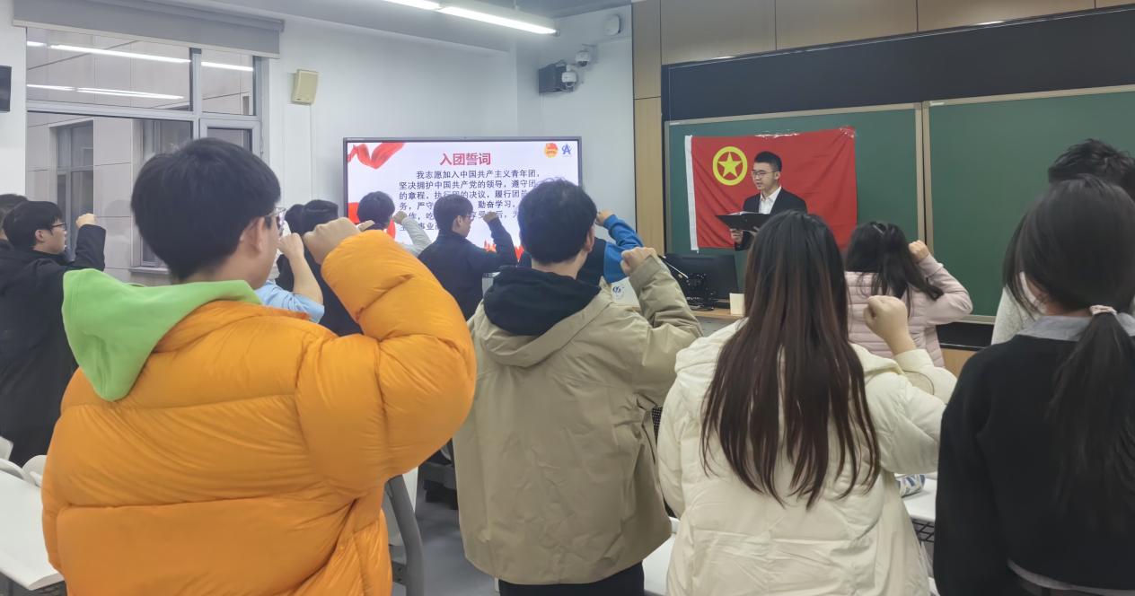 在李梓源的带领下,新老团员们面向团旗,举起右拳,庄严宣誓。铿锵有力的誓言落地有声,新团员们以崭新饱满的精神面貌,向团组织表明决心:“我志愿加入中国共产主义青年团,坚决拥护中国共产党的领导,遵守团的章程,执行团的决议,履行团员义务,严守团的纪律,勤奋学习,积极工作,吃苦在前,享受在后,为共产主义事业而奋斗。”
