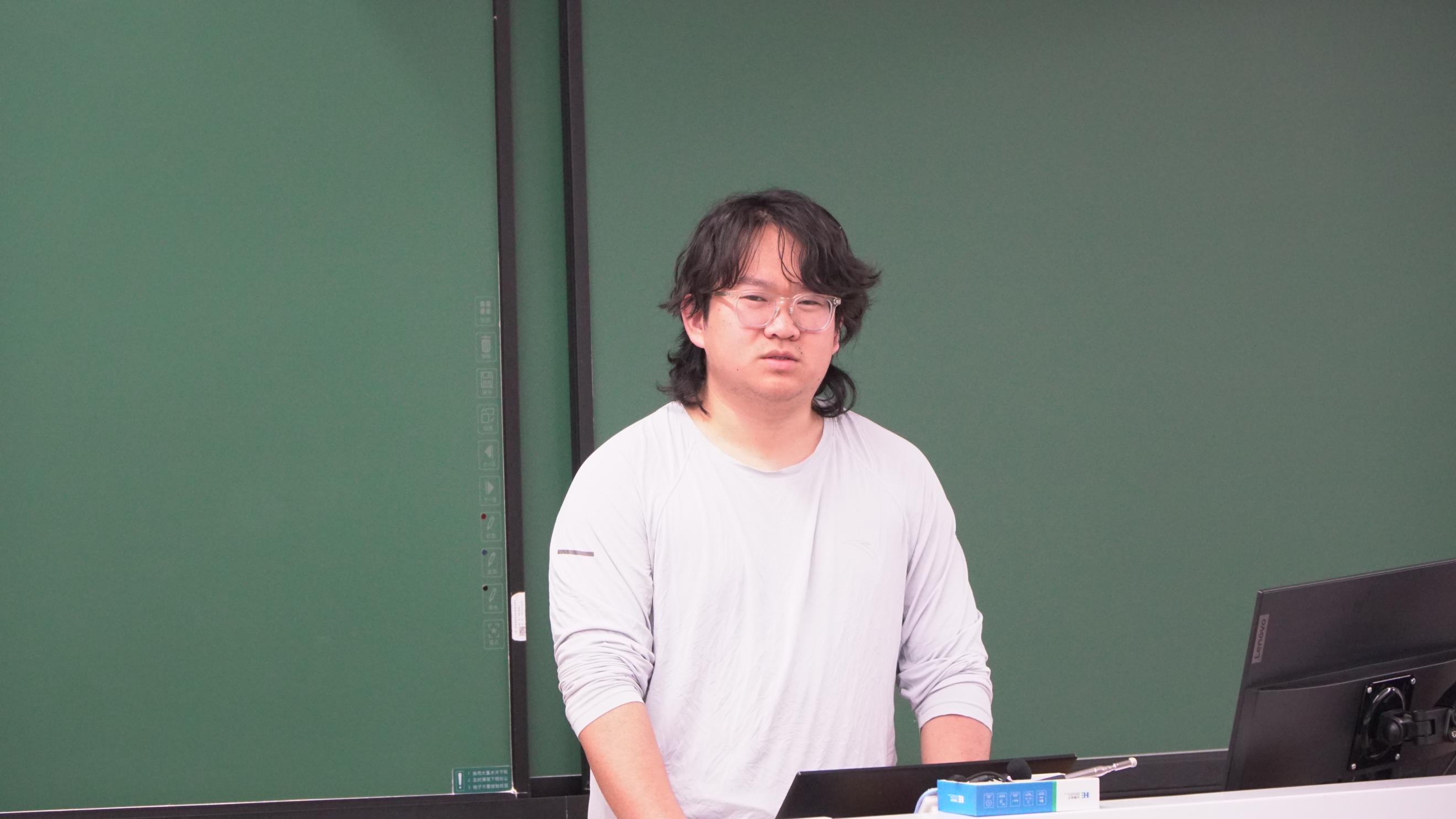 学生会宣传二部负责人熊昱博围绕新闻摄影规范展开讲解,在构图、用光及主题表达等方面指出了常见问题与改进方向。