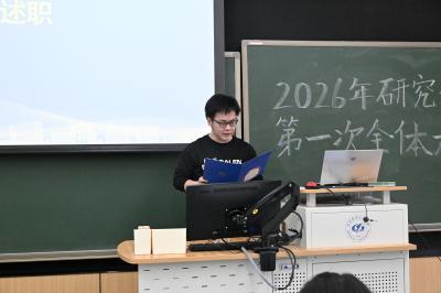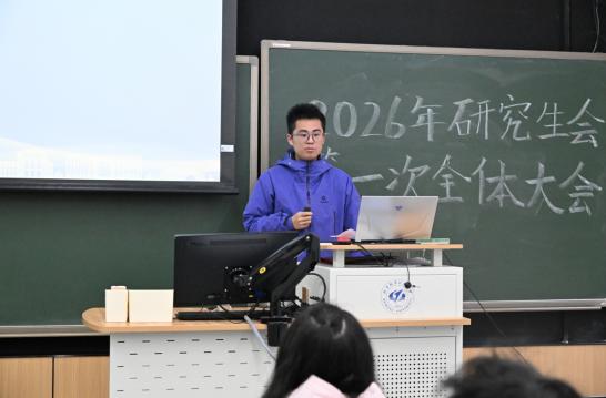 会议伊始,学院研究生会执行主席李筑勋总结了2025年度研究生会整体工作情况,重点介绍了制度建设、部门调整优化和骨干培养等方面的工作成效,明确了下一阶段的工作思路和重点。
